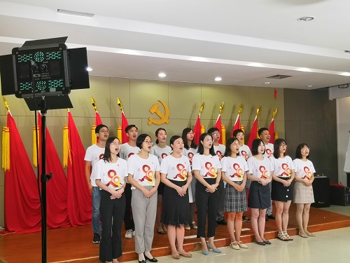 錄制當(dāng)天, 15位黨員和職工代表身著統(tǒng)一服裝,精神飽滿,首先對(duì)著鏡頭宣告自己的初心和使命:“我們是廣東興奇金屬有限公司黨支部,服務(wù)群眾、服務(wù)企業(yè),讓社會(huì)更可持續(xù)發(fā)展是我們的初心和使命。”接著,飽含深情地朗誦了對(duì)黨和祖國的頌詞:“在槍林彈雨戰(zhàn)火硝煙的年代,黨要求我們沖鋒殺敵、勇往直前,因?yàn)槲覀兪枪伯a(chǎn)黨員……把黨的歷史譜成一首曲,悅動(dòng)山河,把赤子情懷匯成一句話,我愛祖國。”活動(dòng)以合唱激昂動(dòng)情的《歌唱祖國》作為結(jié)尾:“五星紅旗迎風(fēng)飄揚(yáng),勝利歌聲多么響亮……”唱出的是我們的心聲,祝愿我們親愛的祖國,永遠(yuǎn)繁榮富強(qiáng)。