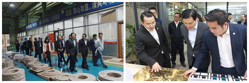 興奇集團副董事長陳賀枝先生、正圣貿易總經理梁志文先生、正家文化總經理陳煥枝先生及多位公司高管陪同市領導一行實地參觀興奇銅帶廠及展品展示區,了解企業的發展狀況。