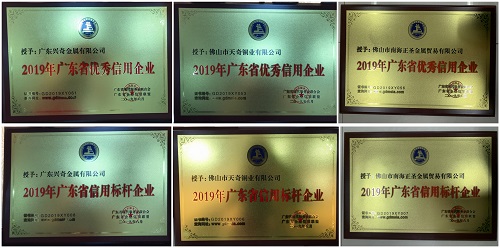 經全面評審核定,興奇集團旗下子公司廣東興奇金屬有限公司、佛山市天奇銅業有限公司及佛山市南海正圣金屬貿易有限公司榮獲“2019年廣東省信用標桿企業”和“2019年廣東省優秀信用企業”稱號。