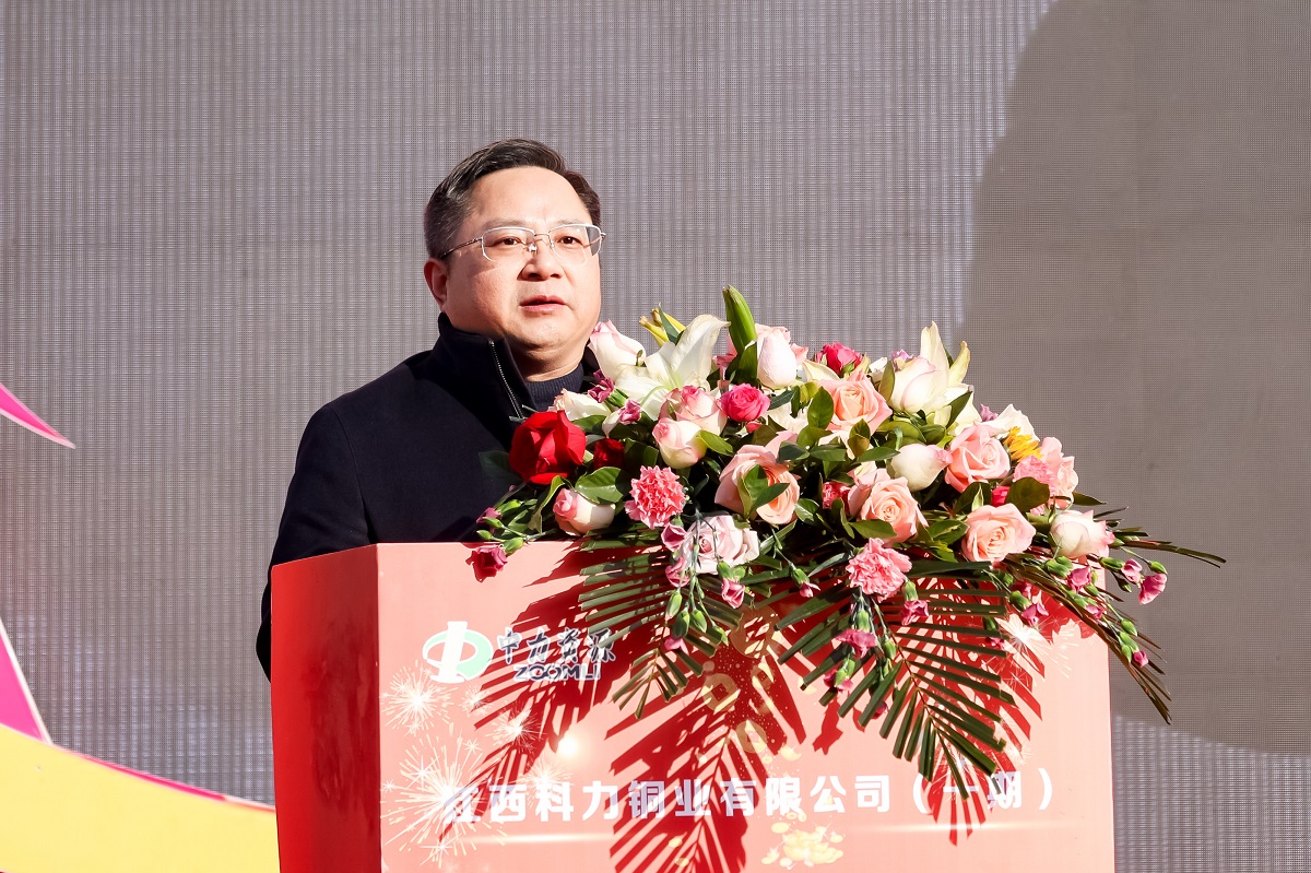 興奇集團常務副董事長、江西中力資源控股有限公司董事長陳湛枝先生在致辭中對前來參加投產儀式的各位領導、來賓表示誠摯的歡迎和衷心的感謝。他表示科力銅業項目歷經近兩年的可行性研究,自今年4月15日正式動工以來,至今僅用時8個月即實現安全、穩定投產,充分體現了中力速度。下一步,我們將不斷加大信息化、智能化、自動化研發和投入力度,致力深耕銅基金屬循環智造產業,持續延伸產業鏈條,適時高效高質量推進科力銅業后期項目建設,為科力銅業的發展壯大,為貴溪經濟社會發展作出應有的貢獻!